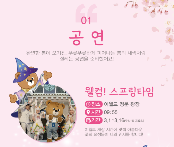 이월드 블라썸 피크닉 기간 동안 다양한 프로그램과 이벤트가 준비되어 있습니다: