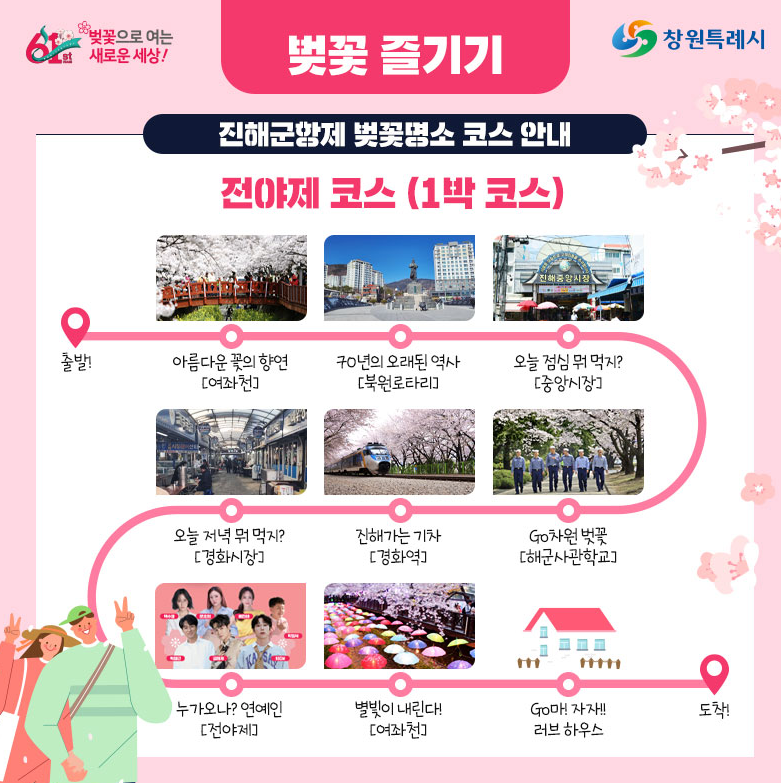진해에는 벚꽃 명소가 곳곳에 있어서 사진찍기 좋은 곳들이 많이 있습니다. 벚꽃 명소 코스를 어떻게 짜야할지 고민이 된다면 벚꽃 투어 코스도 확인해보세요
